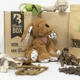 De puppybox van Bellobox bevat snacks die geschikt zijn voor de jonge pup tot 6 maanden en bevat naast snacks ook nog een aantal verassingen. In de Bellobox zit alleen kwalitatief hoogwaardige snacks en leuke speeltjes waarmee je met de aanschaf goede doelen steunt. Hierdoor maak je niet alleen uw eigen hond blij maar steunt u automatisch goede doelen die zich inzetten voor dierenwelzijn.